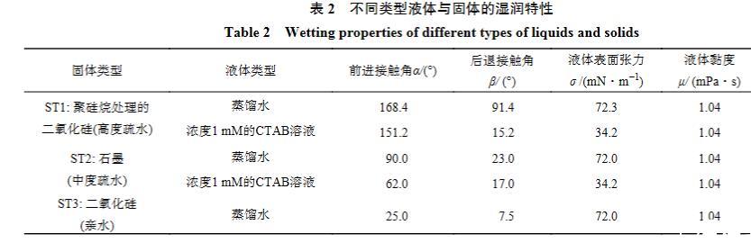 表2不同類型液體與固體的濕潤特性